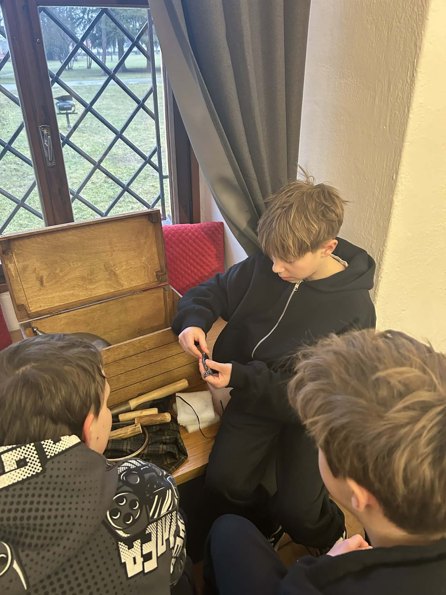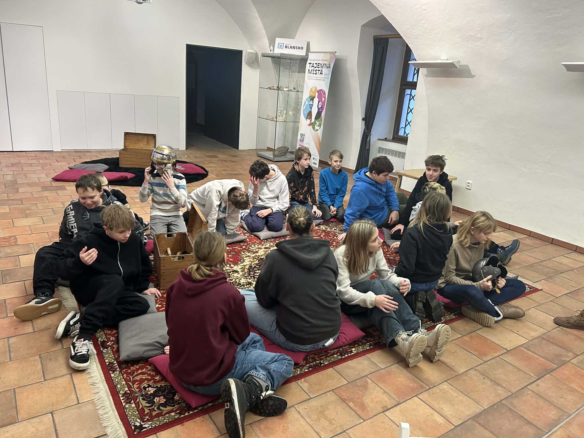Ze Svitávky jsme odjížděli v osm hodin a za půl hodiny jsme vystoupili na zastávce Blansko město. Po příchodu do muzea jsme si odložili věci, nasvačili jsme se a program Blanensko od Keltů po středověk začal. Do skupin jsme dostali truhly, ve kterých byly věci k jednotlivým obdobím středověku. Naším úkolem bylo truhly správně zařadit do období a odůvodnit naši volbu. Nejvíce nás zaujali rytířské přilby. Po práci ve skupinách jsme se šli podívat do expozice na regionální nálezy. Přišel za námi i pan konzervátor a povídali jsme si o jeho práci. Na závěr jsme měli rozchod a o půl dvanácté jsme jeli zpátky do Svitávky.