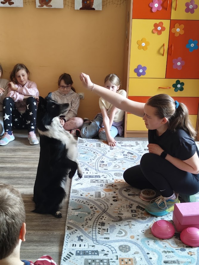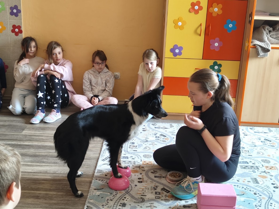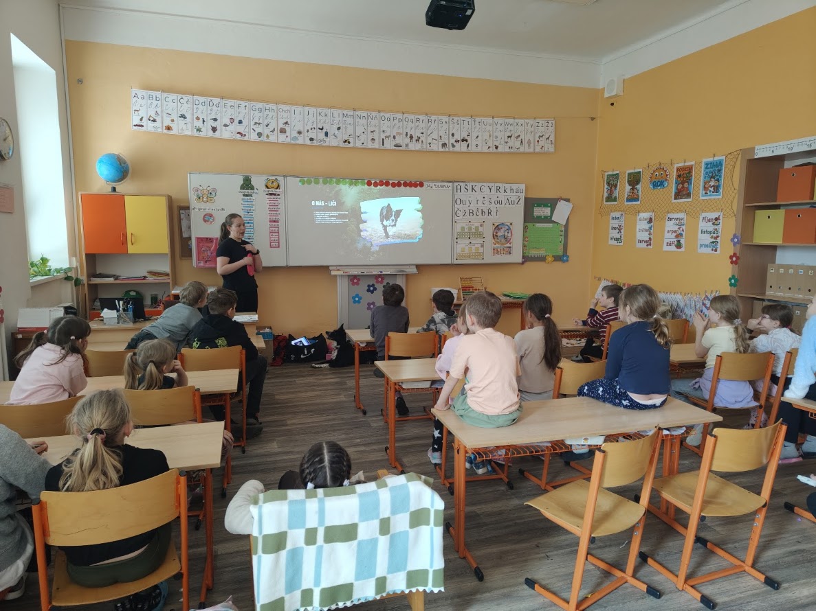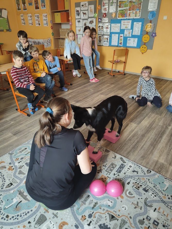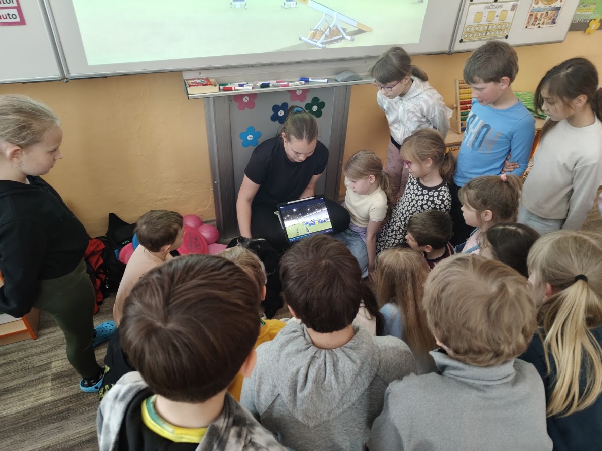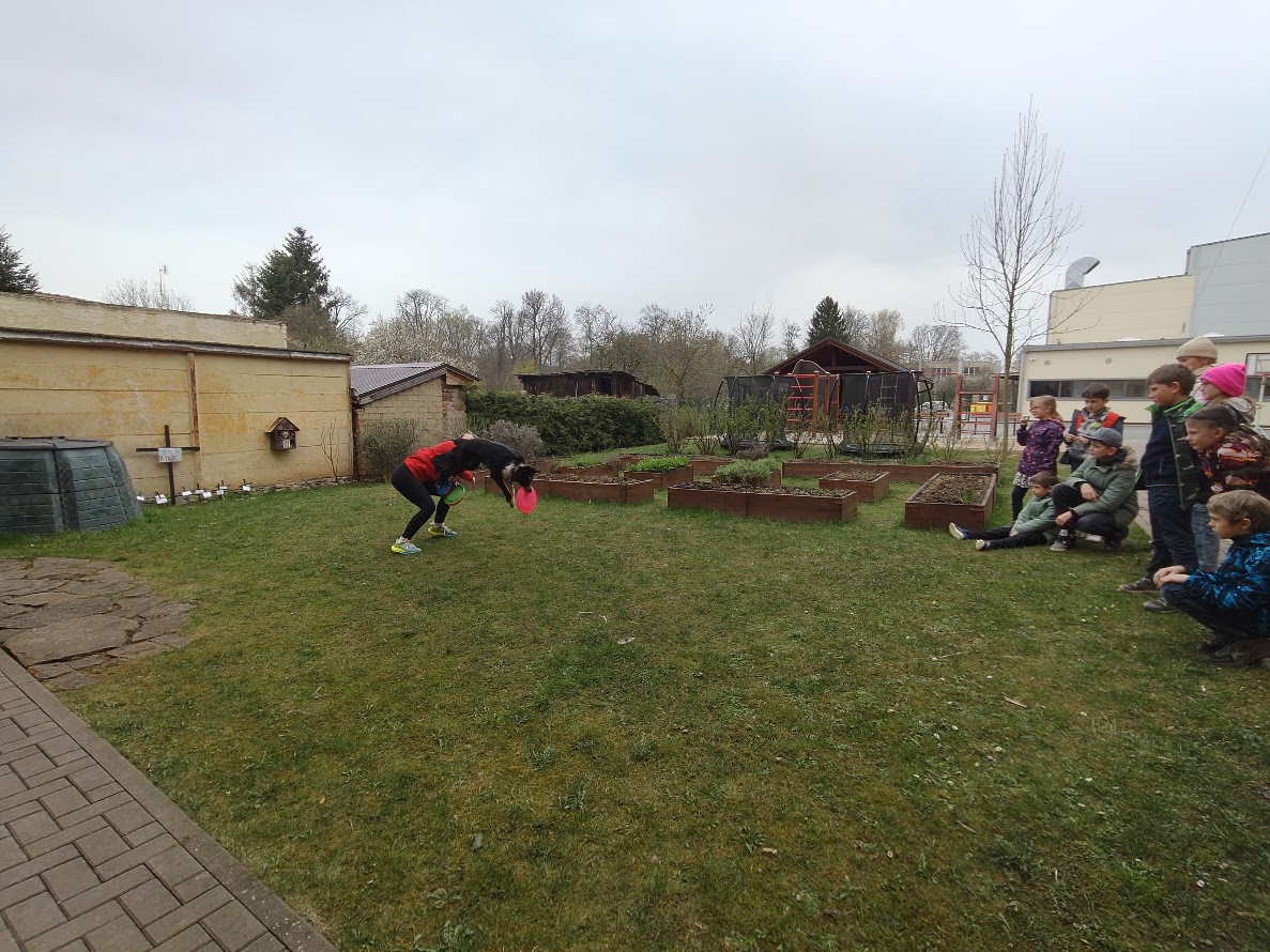 Dne 14. 4.2026 nás ve školní družině navštívila Zuzka Hrdličková se svou psí parťačkou Liči, které jsou 4 roky. Děti z ní byly nadšené, některé ji již znaly, protože nás tito dva parťáci navštívili již na podzim roku 2025. Opět jsme se dozvěděli spoustu zajímavých informací ohledně výcviku a motivace pejsků, aby zvládli výcvik. Došlo i na přání dětí a jejich "hledačku" hračky. Ti nebojácní si s ním mohli zařádit a dávat mu povely.