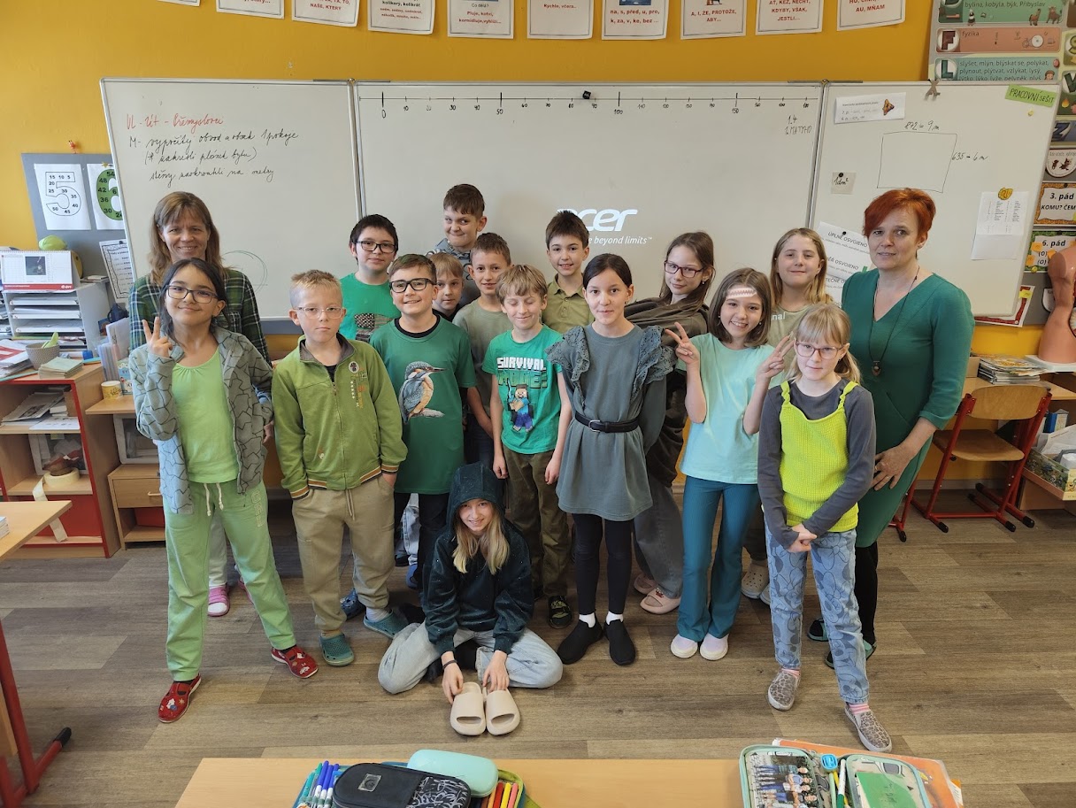 Den v zeleném oblečení na škole je tematický den zaměřený na podporu jarní atmosféry a ekologie. Žáci a učitelé si jej moc užili a s očekáváním se těší na další barevný den.
