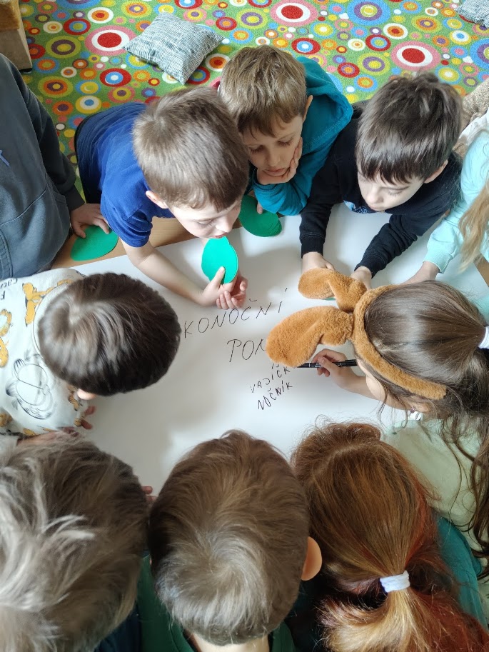 Ve středu 1. dubna 2026 se nám celá škola zazelenala. Zelená je barva jara a dnes začalo jaro i u nás ve škole. Všichni jsme přišli v zeleném oblečení a pro děti byly připravené zelené úkoly a aktivity. Ve školní družině si zahrály oblíbenou schovávací hru “vajíčko zelené” a zvládly také různé skládačky a puzzle.